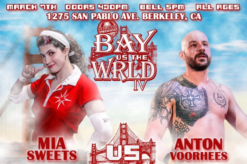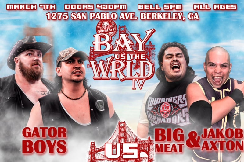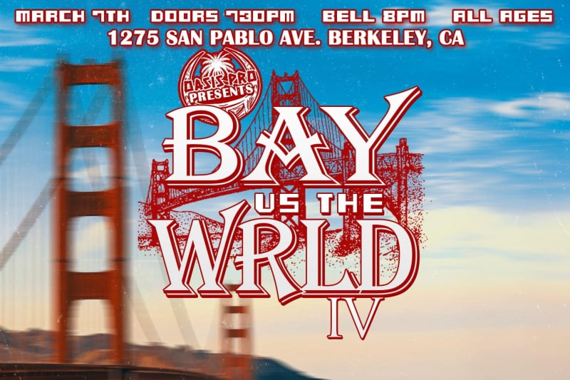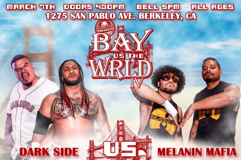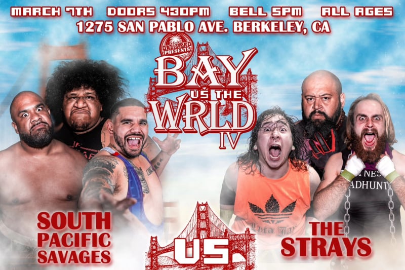 Journey Fatu, Juicy Finau and Iosefa Parisi vs Lyta Jay, Shaun Sims and Oak at Oasis Pro presents: Bay vs the WRLD IV on Saturday, March 7th at the Oasis Dojo.