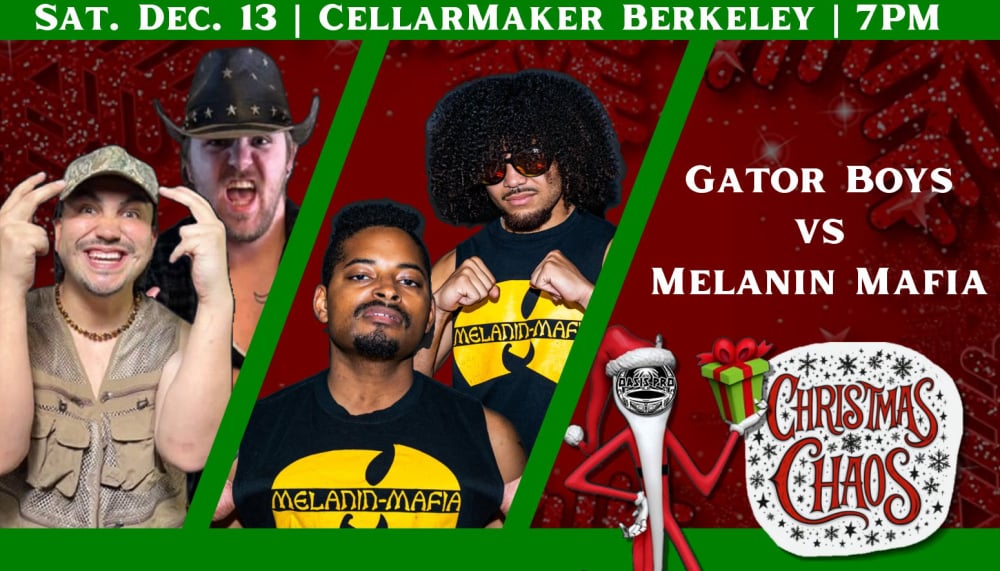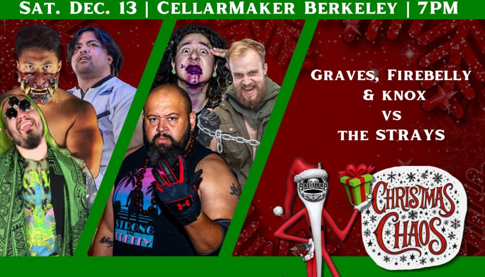 Oasis Pro: Christmas Chaos is on Saturday, December 13th, at the CellarMaker Brewing Company in Berkeley.