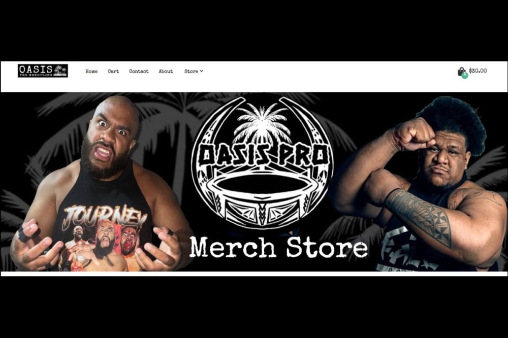 Take a look around at the Oasis Pro Merch shop to get the latest Oasis themed t shirts and memorabilia or other apparel from your favorite Oasis Pro wrestlers like Juicy Finau and Journey Fatu.