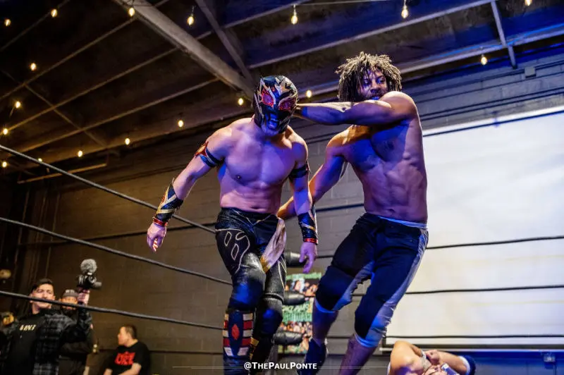 Ritchie Coy, Fabrizio, Nic Zander, Ishmael Vaughn, Diablo Azetca, and El Mago - 6 Man Scramble Match